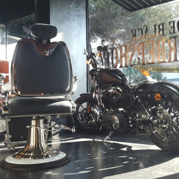 Barber chairs and beauty products equal a men’s grooming haven.